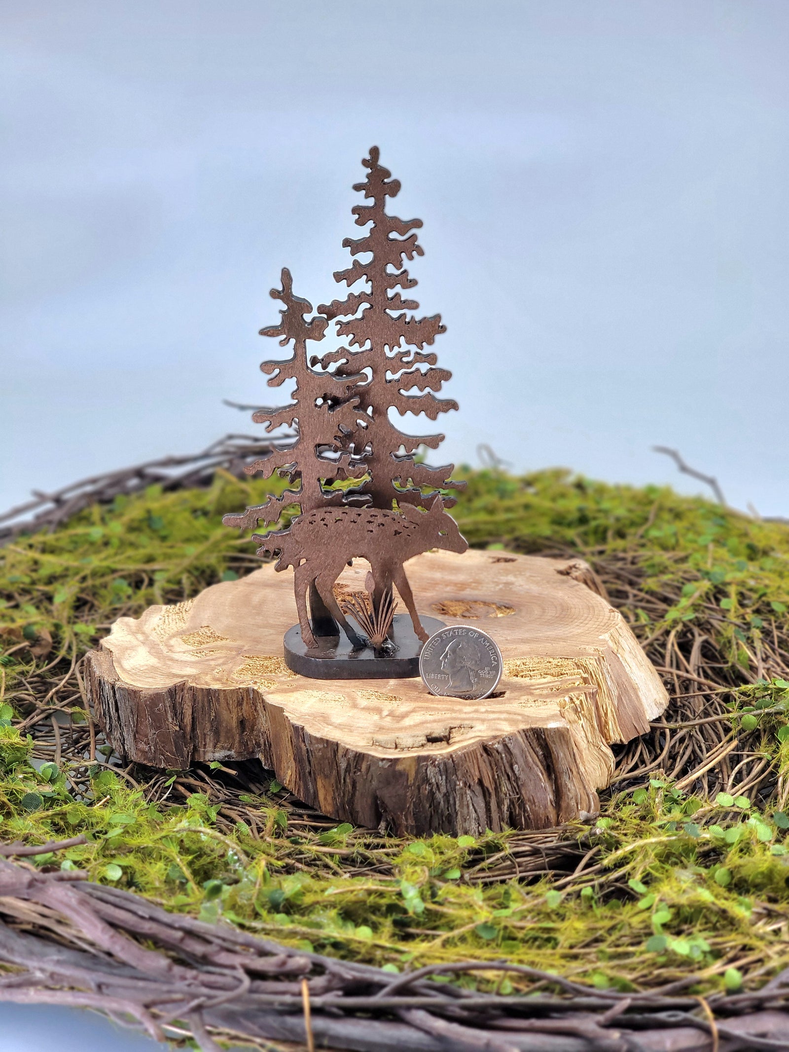 Mini Fawn in Trees Metal Sculpture